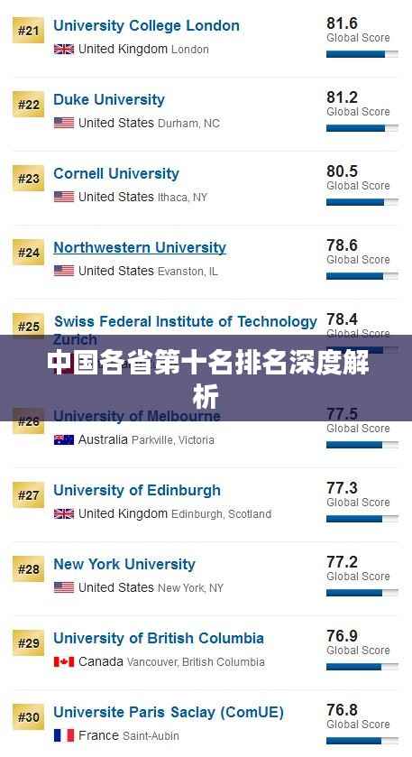 通过对中国各省第十名排名的分析,我们可以看出各省份在不同领域的发展状况和优势,这些排名反映了各省份在经济发展、教育水平和科技实力等方面的差异,我们也应该看到,各省份都在不断努力,发挥自身优势,迎接挑战,实现更好的发展,希望本文能为读者提供一个全面的视角,了解中国各省份的发展状况。